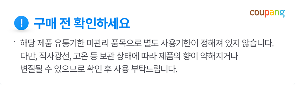 | 교환/반품 신청 기준일 | ㆍ단순변심에 의한 로켓배송 상품의 교환/반품은 제품 수령 후 30일 이내까지, 교환/반품 제한사항에 해당하지 않는 경우에만 가능 (교환/반품 비용 고객부담) ㆍ상품의 내용이 표시·광고의 내용과 다른 경우에는 상품을 수령한 날부터 3개월 이내, 그 사실을 안 날 또는 알 수 있었던 날부터 |