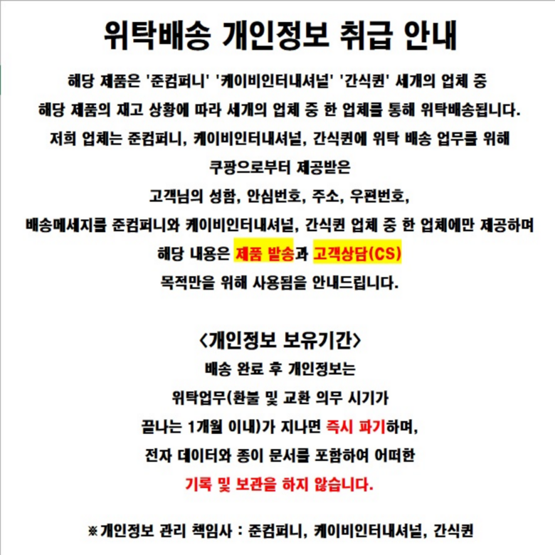 미성년자가 체결한 계약은 법정대리인이 동의하지 않는 경우 본인 또는 법정대리인이 취소할 수 있습니다. 쿠팡은 통신판매중개자로서 통신판매의 당사자가 아니며, 광고, 고시정보, 상품 주문, 배송 및 환불의 의무와 책임은 각 판매자에 있습니다.