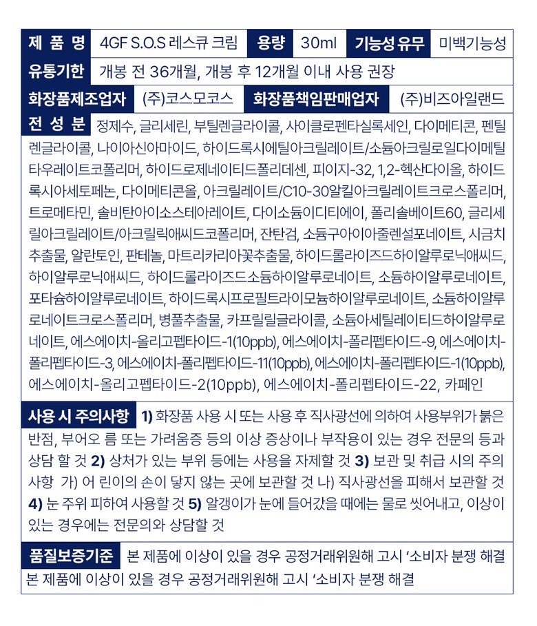 | 용량(중량) | 30ml | 제품 주요 사양 | 모든피부용, 민감성 |