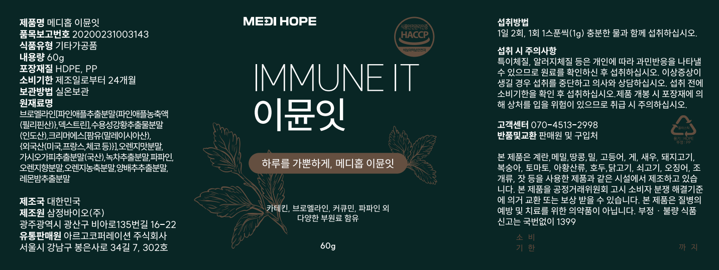 | 포장단위별 내용물의 용량(중량), 수량 | 60g*3개 | 원재료명 및 함량 | 컨텐츠 참조 |