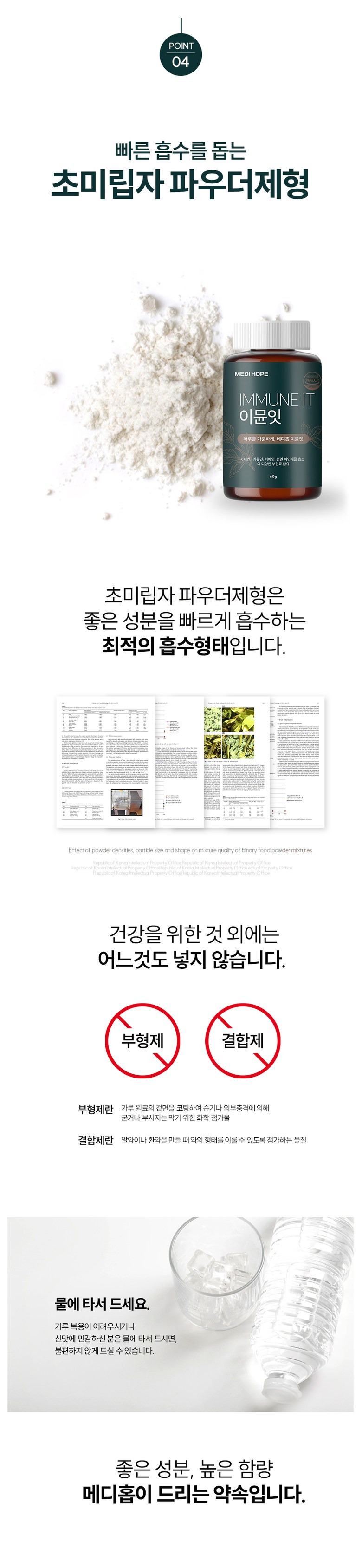 - 분말 포장형태: 플라스틱용기