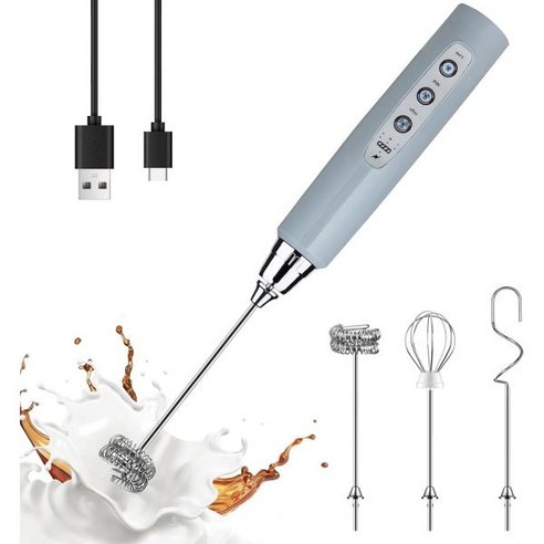 YUSWKO 충전식 우유 거품기 핸드헬드 헤드 3개 실버 커피 전기 음료 폼 믹서 라떼 카푸치노 핫초콜릿 계란에 맞게 조절 가능한 3가지 속도로 미니 핸드 젓기