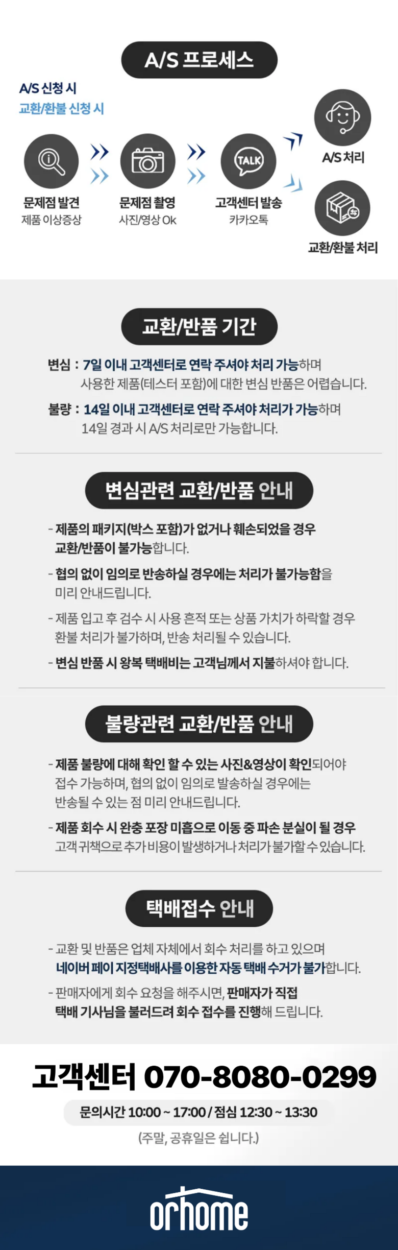 - ㆍ모니터 해상도의 차이로 인해 색상이나 이미지가 실제와 달라, 고객이 단순 변심으로 교환/반품을 무료로 요청하는 경우