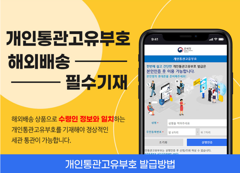 - 원활한 통관을 위해 개인통관고유부호가 필요합니다.