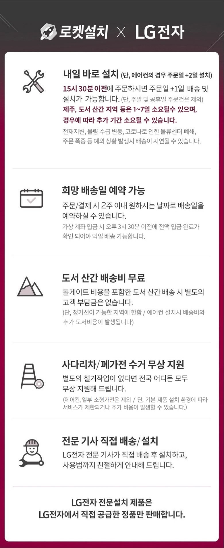 | 배송방법 | 설치배송 | 배송사 | LG전자 |