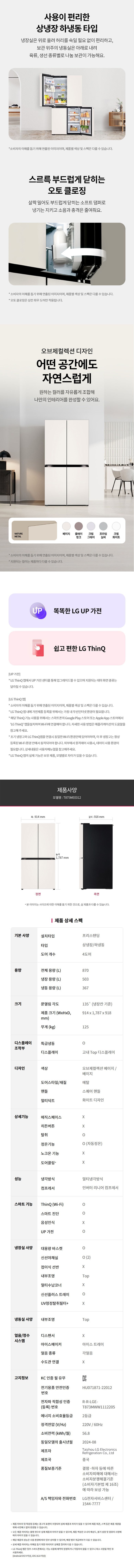| 품명 및 모델명 | 전기냉장·냉동기기 / T875MEE012 | KC 인증정보 | 본품 : HU071871-22012J, R-R-LGE-T873MWW1112205 / 무선기기 : R-C-LGE-LCWB-001 |