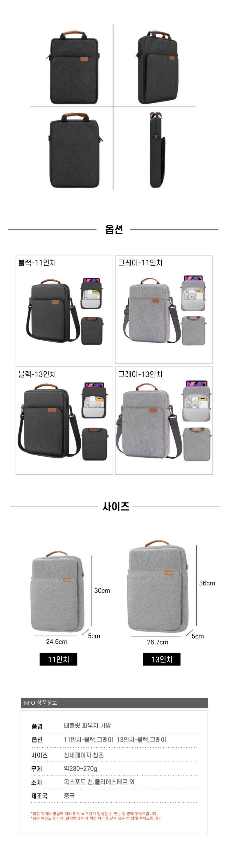 | 종류 | 태블릿&아이패드 파우치 가방 | 소재 | 옥스포드 천,폴리에스테르 외 |