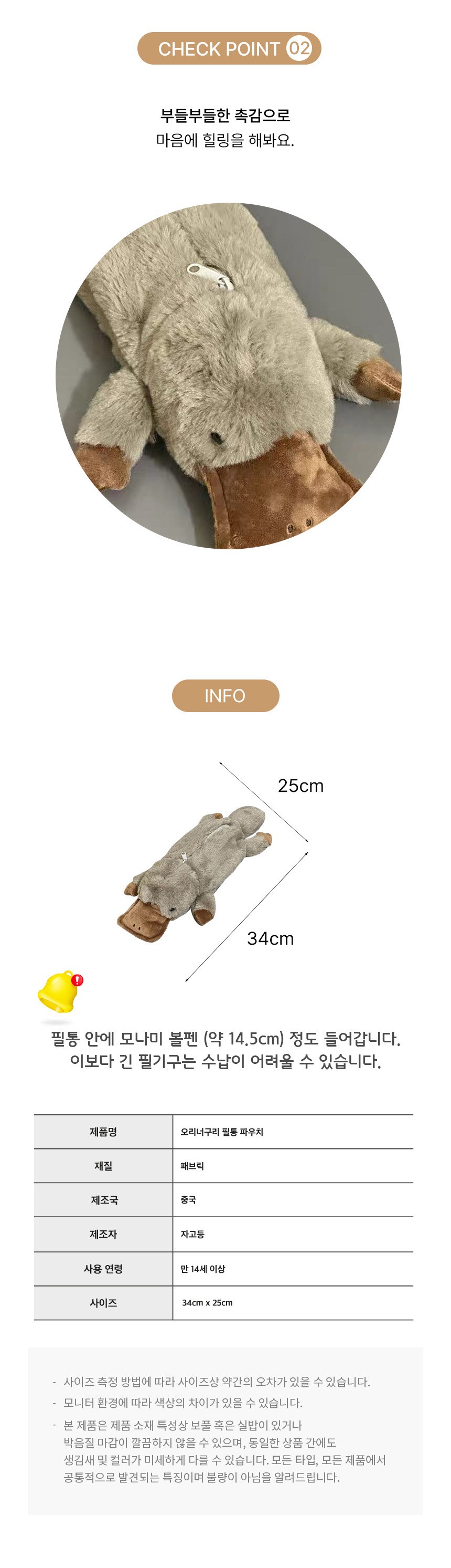 | 품명 및 모델명 | 아트조이 오리너구리 필통 파우치 | 인증/허가 사항 | 해당없음(14세이상) |