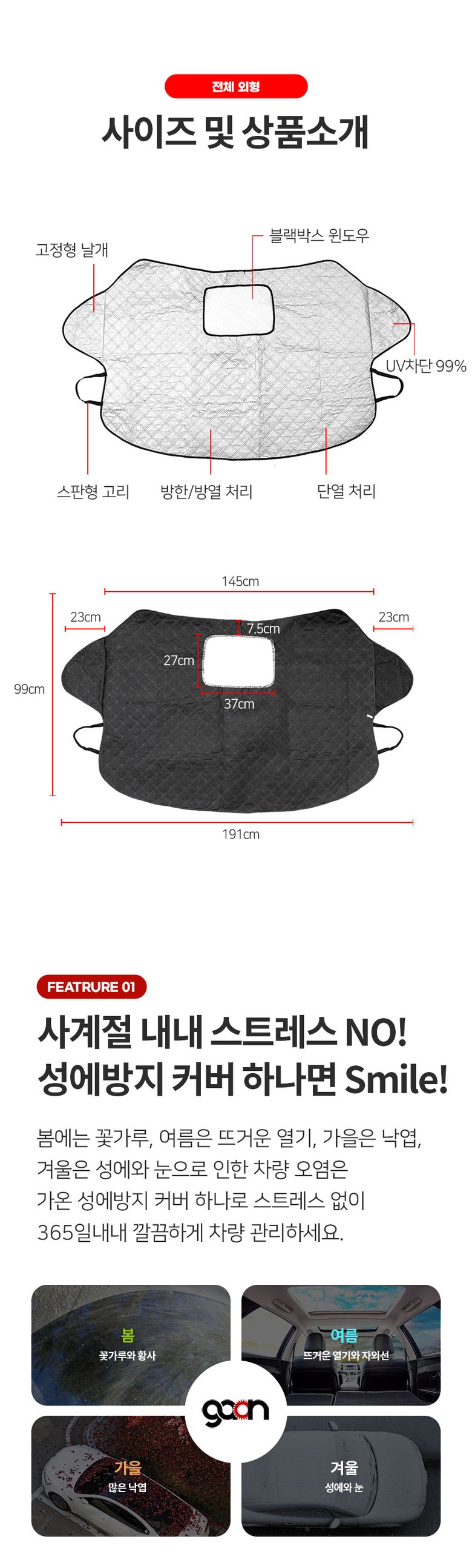 | 품명 및 모델명 | 포워멜튼 차량용 성에방지커버 자동차 앞유리 블랙박스용 SB101 | 인증/허가 사항 | 상품 상세페이지 참조 |