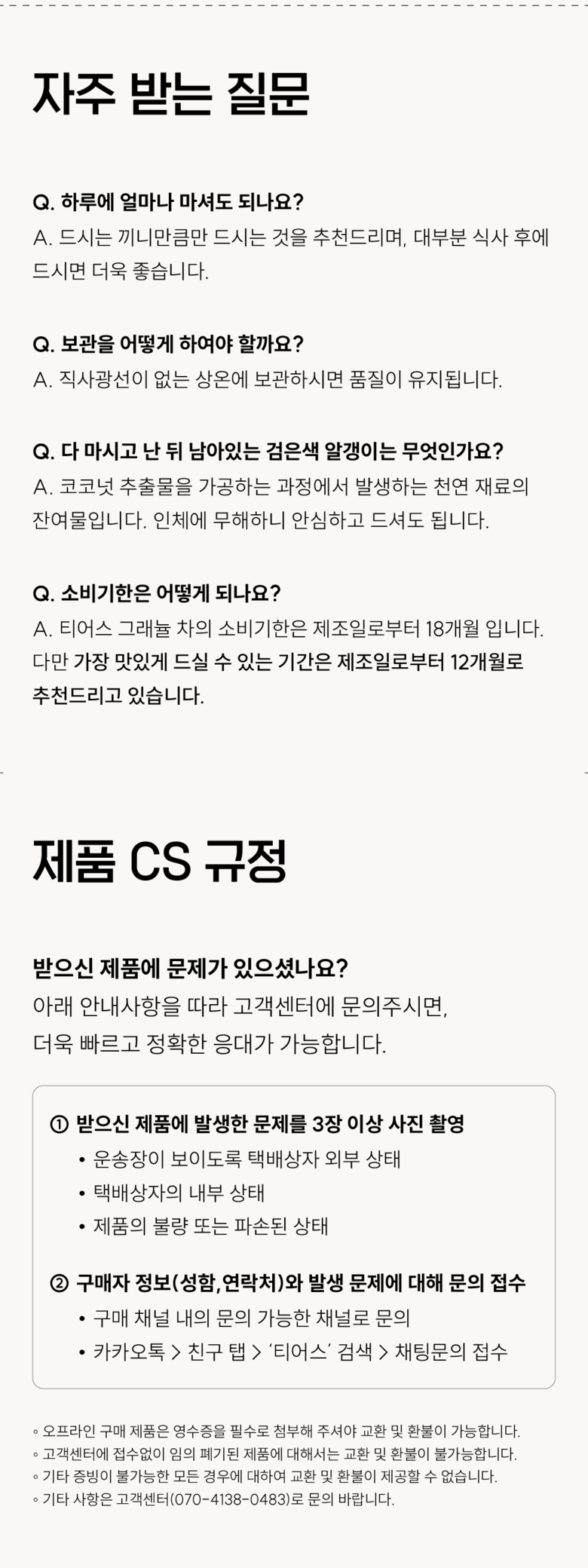 | 소비자상담 및 교환반품 문의 | 쿠팡고객센터 1577-7011 배송 및 환불/교환에 대한 문의는 마이쿠팡-고객센터 내 상담하기를 이용해주세요. | ||