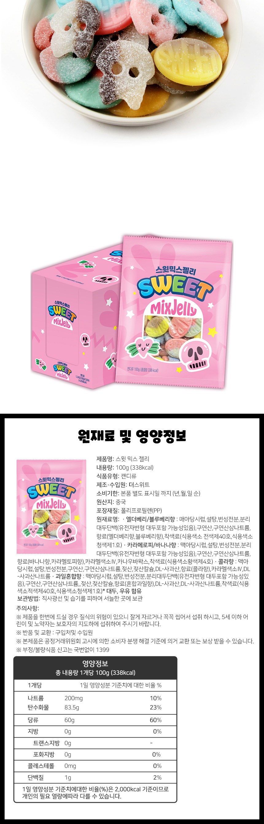 | 생산자 및 소재지 | 컨텐츠 참조 | 제조연월일, 소비기한 또는 품질유지기한 | 소비기한(또는 유통기한) : 2026년 06월 01일 이거나 그 이후인 상품 제조년월일 : 1945년 08월 15일 이후인 제조상품 |
