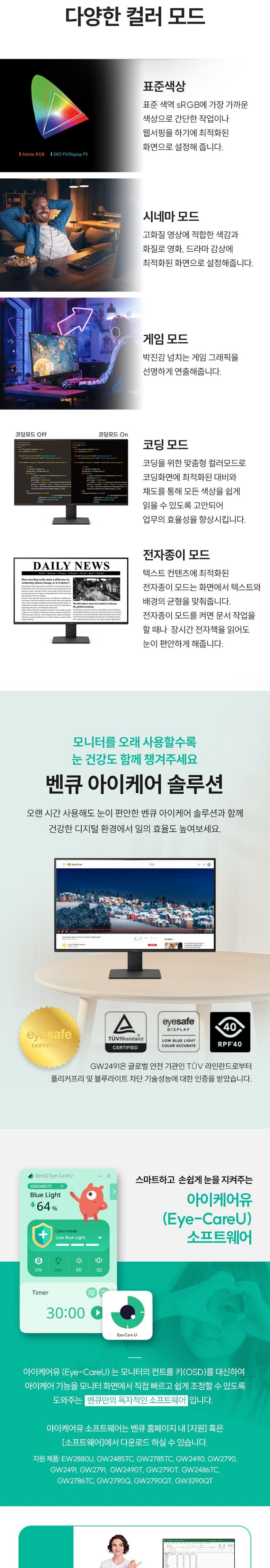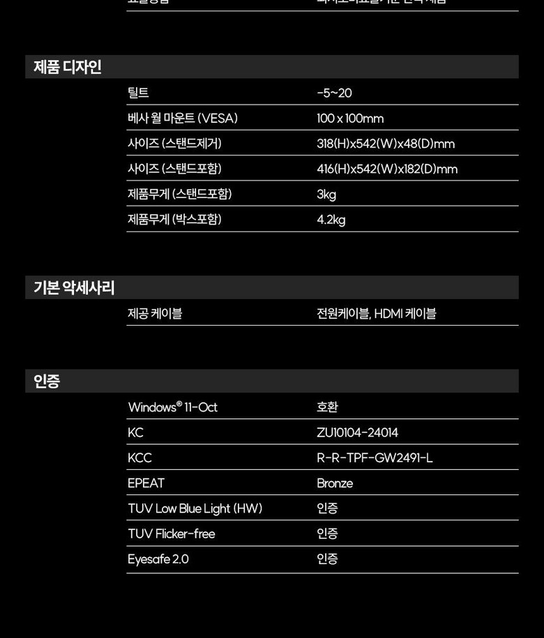| 품명 및 모델명 | 벤큐 GW2491 | KC 인증정보 | R-R-TPF-GW2491-L / ZU10104-24014 |