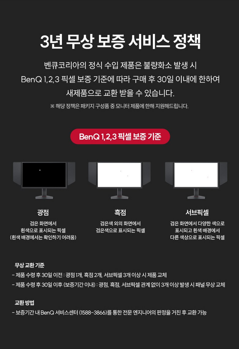 - ㆍ제조사의 사정 (신모델 출시 등) 및 부품 가격 변동 등에 의해 무료 교환/반품으로 요청하는 경우