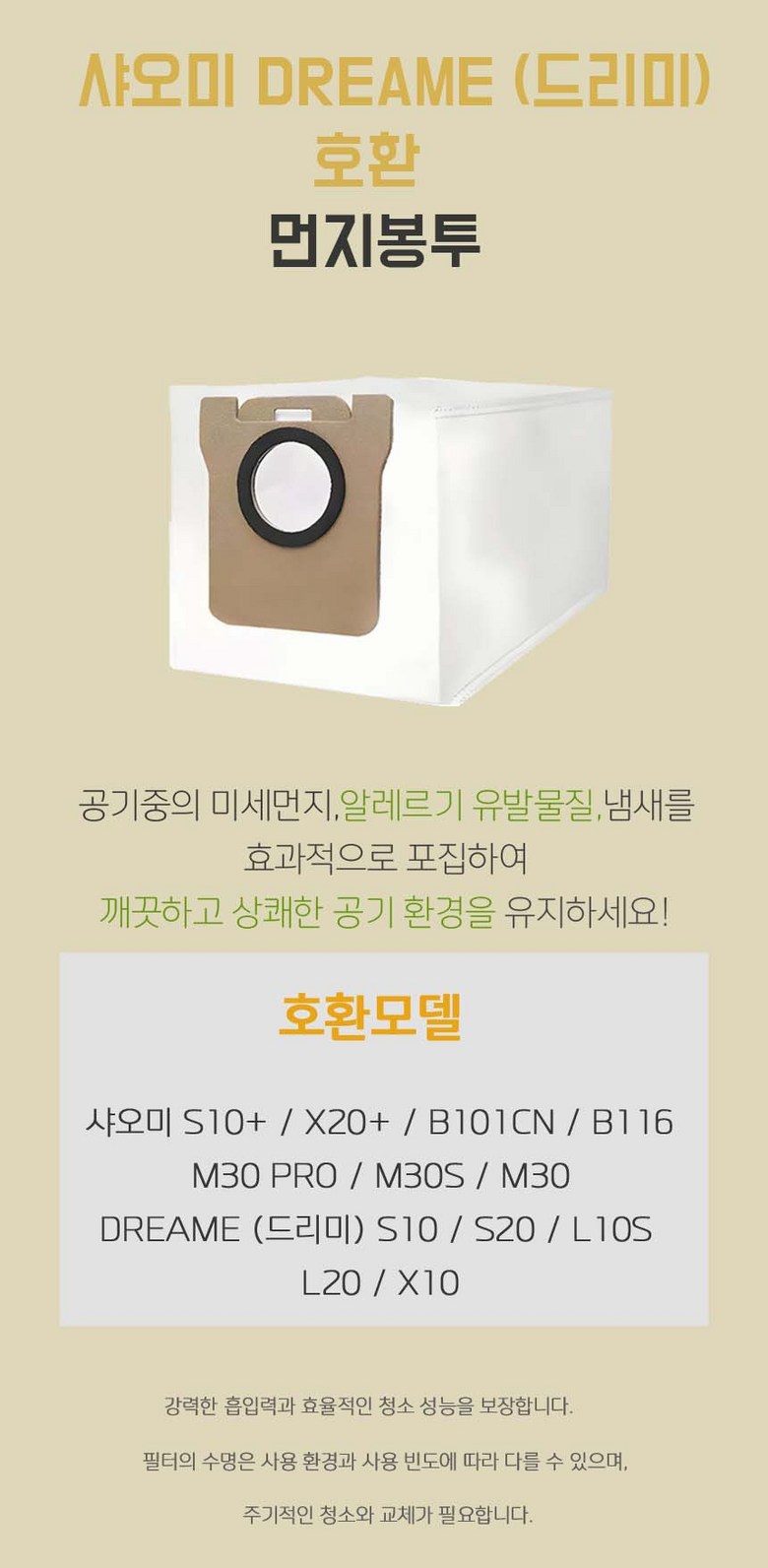 | 품명 및 모델명 | 샤오미 드리미 로봇청소기 먼지봉투 | 인증/허가 사항 | 해당없음 |