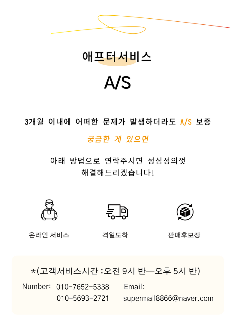 - ㆍ모니터 해상도의 차이로 인해 색상이나 이미지가 실제와 달라, 고객이 단순 변심으로 교환/반품을 무료로 요청하는 경우