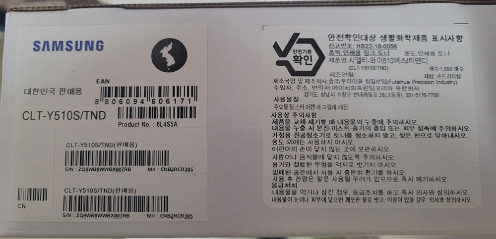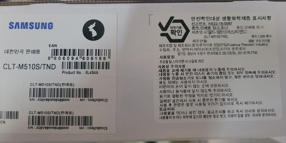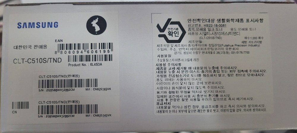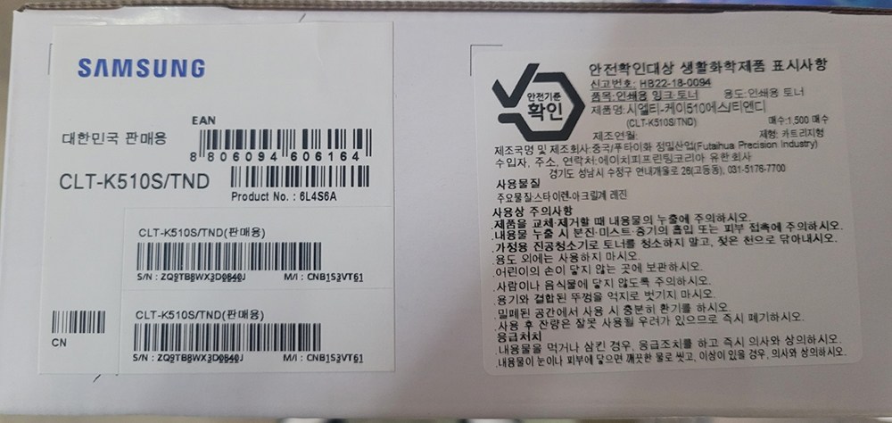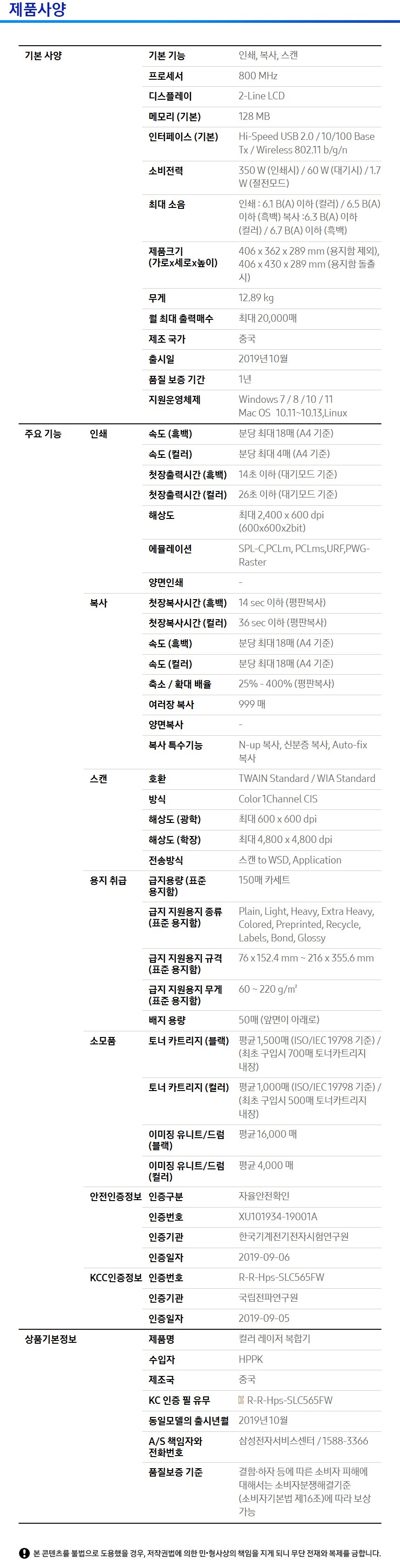 | 품명 및 모델명 | 컬러 레이저 복합기 / SL-C563W | KC 인증정보 | 본품 : XU101934-19001A, R-R-Hps-SLC565FW/ 토너 : HB22-18-0067, HB22-18-0058, HB22-18-0081, HB22-18-0094 |