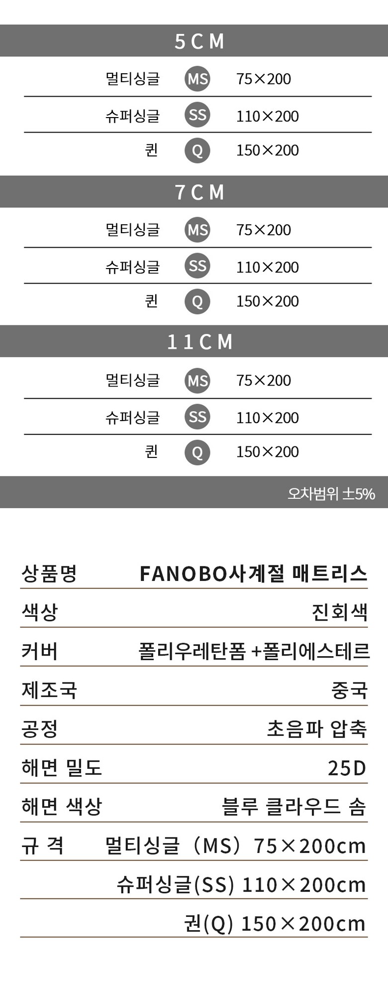 | 품명 | FANOBO 7존 매트리스 | KC 인증정보 | KC인증없음 |
