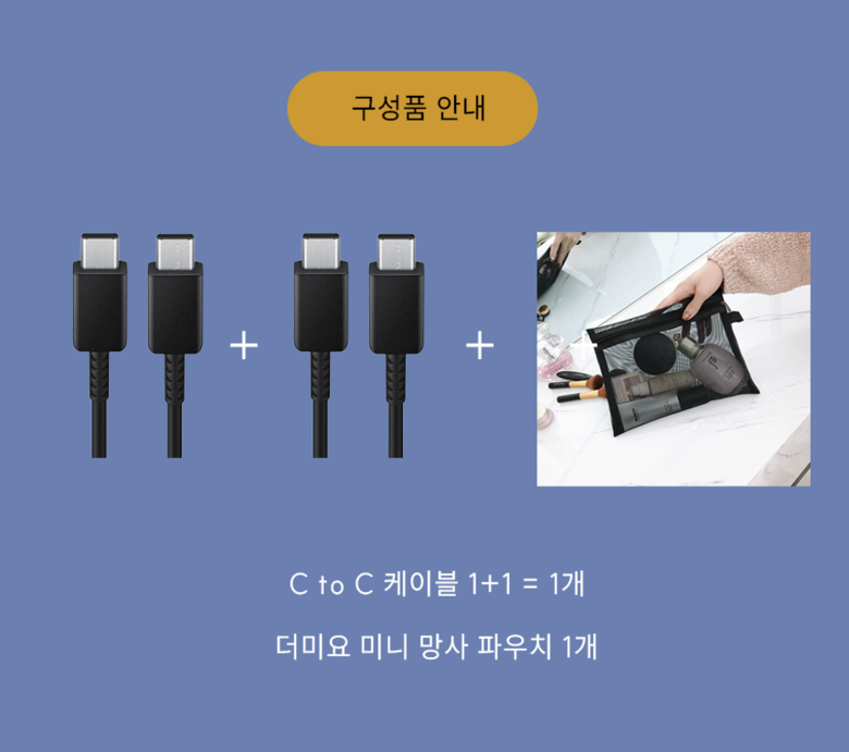 | 품명 및 모델명 | 1+1 삼성 정품 CtoC 초고속 충전, 데이터 통신케이블 1.8m, 1m | 인증/허가 사항 | 해당사항 없음 |