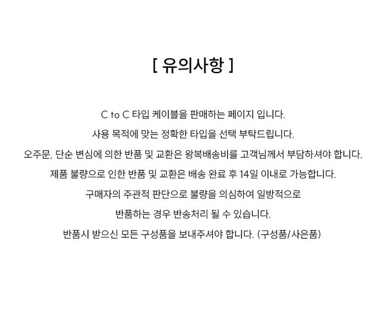 - ㆍ교환/반품에 관한 일반적인 사항은 판매자가 제시사항보다 관계법령이 우선합니다.