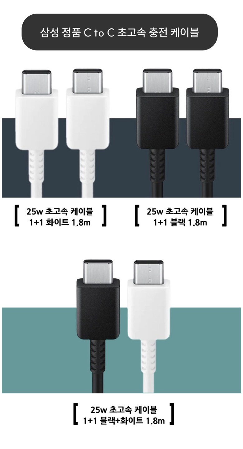 [1+1] 삼성 정품 C타입-C타입 초고속 25W PD최대 60W충전 지원 데이터 통신케이블 갤럭시 태블릿 노트북 스마트폰