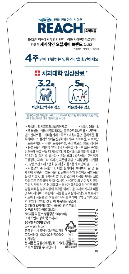 | 품명 및 모델명 | 리치프로페셔널케어제로 | 인증/허가 사항 | 의약외품 |