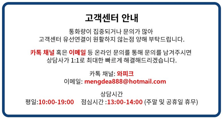 - 공개 게시판이므로 전화번호, 메일 주소 등 고객님의 소중한 개인정보는 절대 남기지 말아주세요.