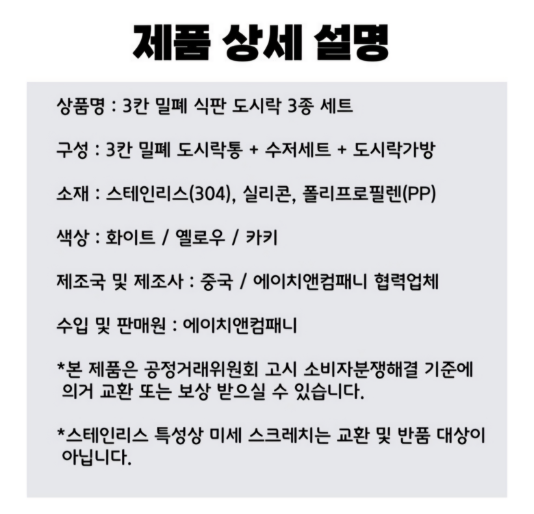 | 제조국(원산지) | 상품 상세페이지 참조 | 제조자(수입자) | 상품 상세페이지 참조 |