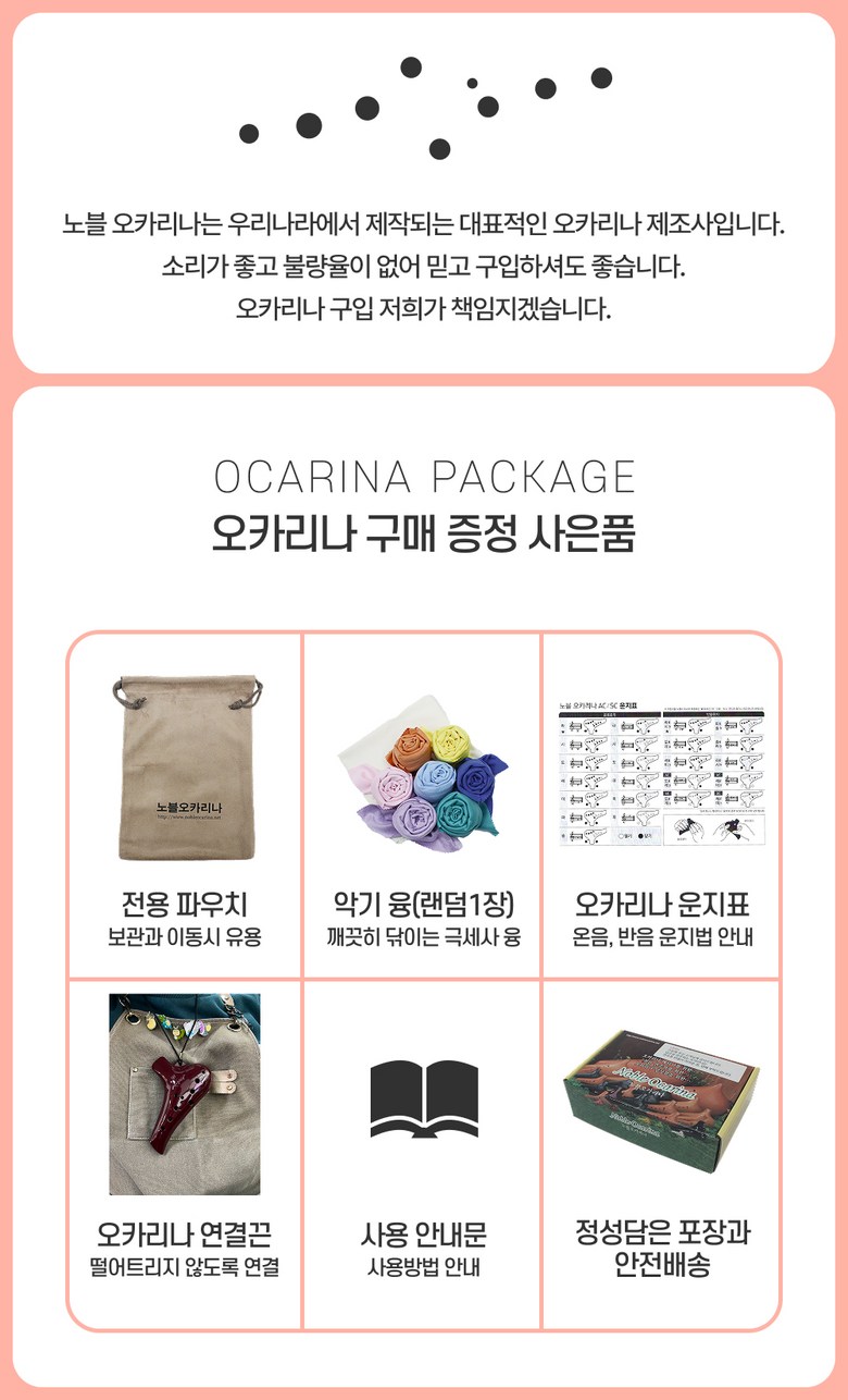 | 제품 구성 | 오카리나, 연주소품 패키지, 극세사 융 | 출시년월 | 상품 상세페이지 참조 |