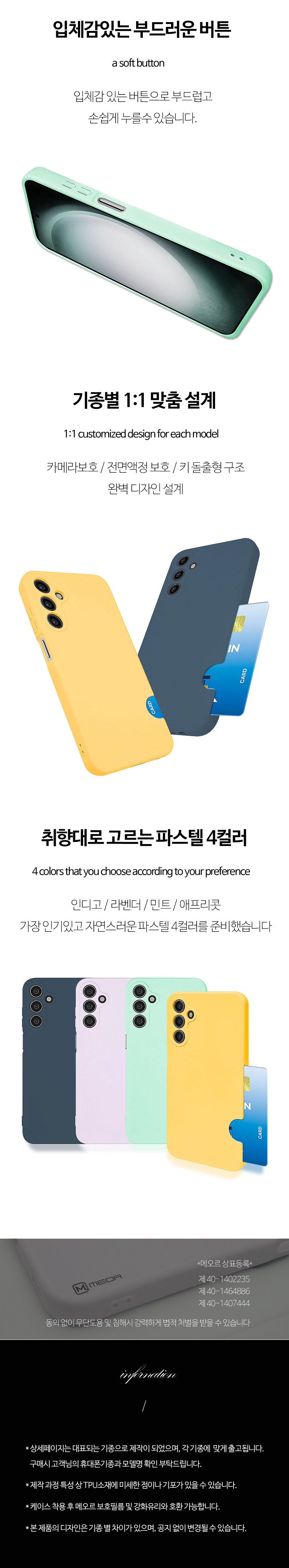 | 품명 및 모델명 | 메오르 소프트컬러 카드 젤리 휴대폰 케이스 갤럭시 S24울트라 (SM-S928) 라벤더 | 인증/허가 사항 | 해당없음 |