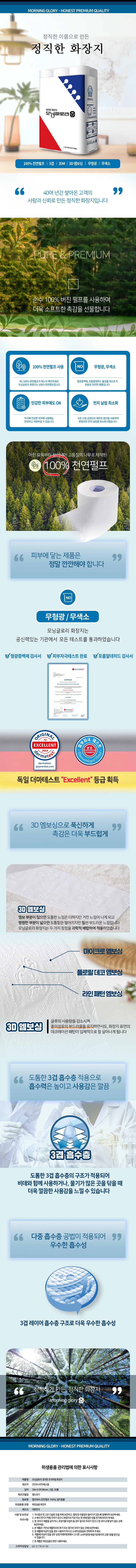 | 품명 및 모델명 | 모닝글로리 정직한 프리미엄 화장지 | 인증/허가 사항 | 위생용품 |