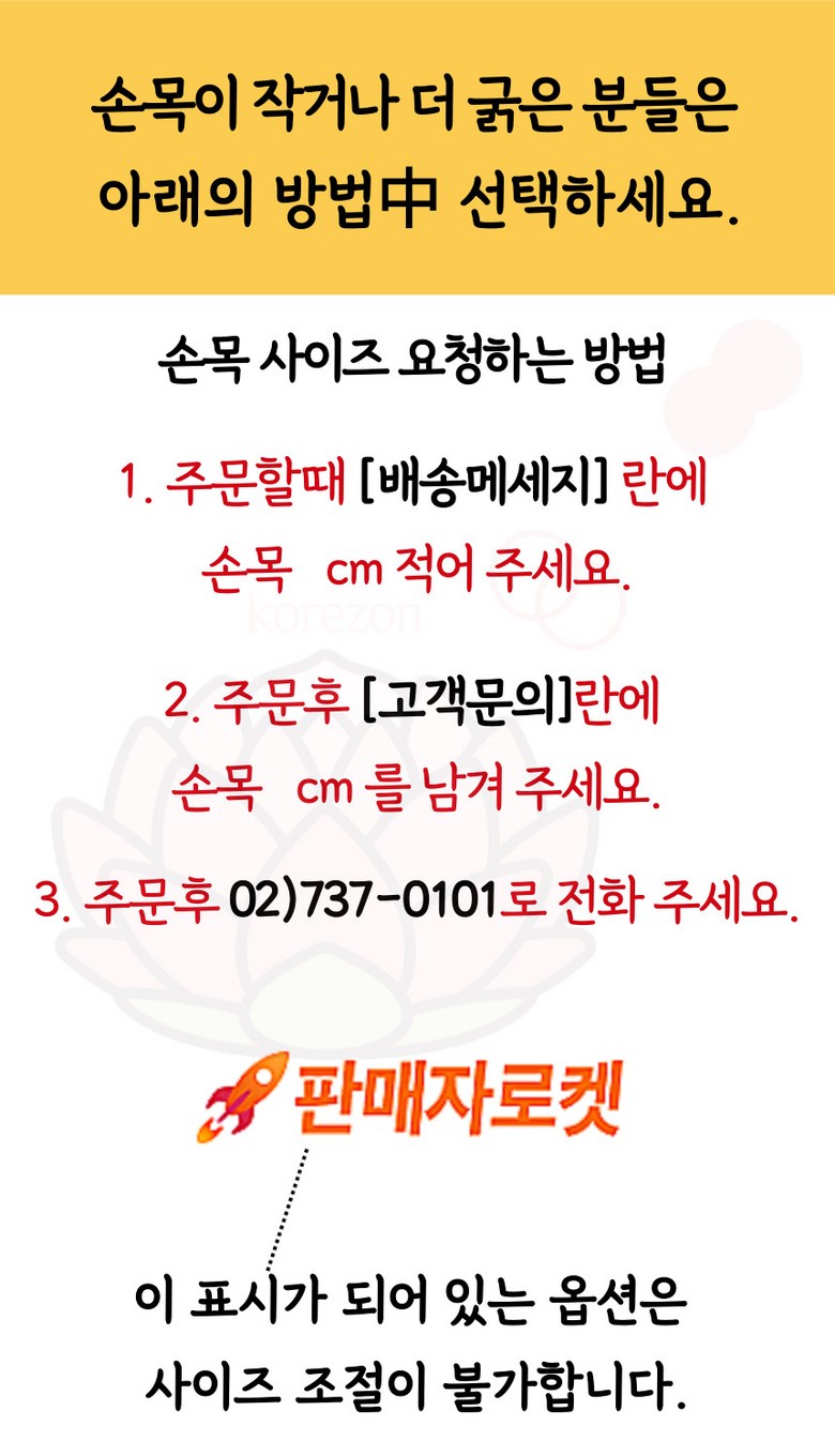 | 치수 | M (약6mm) 팔찌둘레 18cm,L (약8mm) 팔찌둘레 18.3cm,XL (약10mm) 팔찌둘레 20.3cm | 제조자(수입자) | (주)코레존협력업체 / (주)코레존 |
