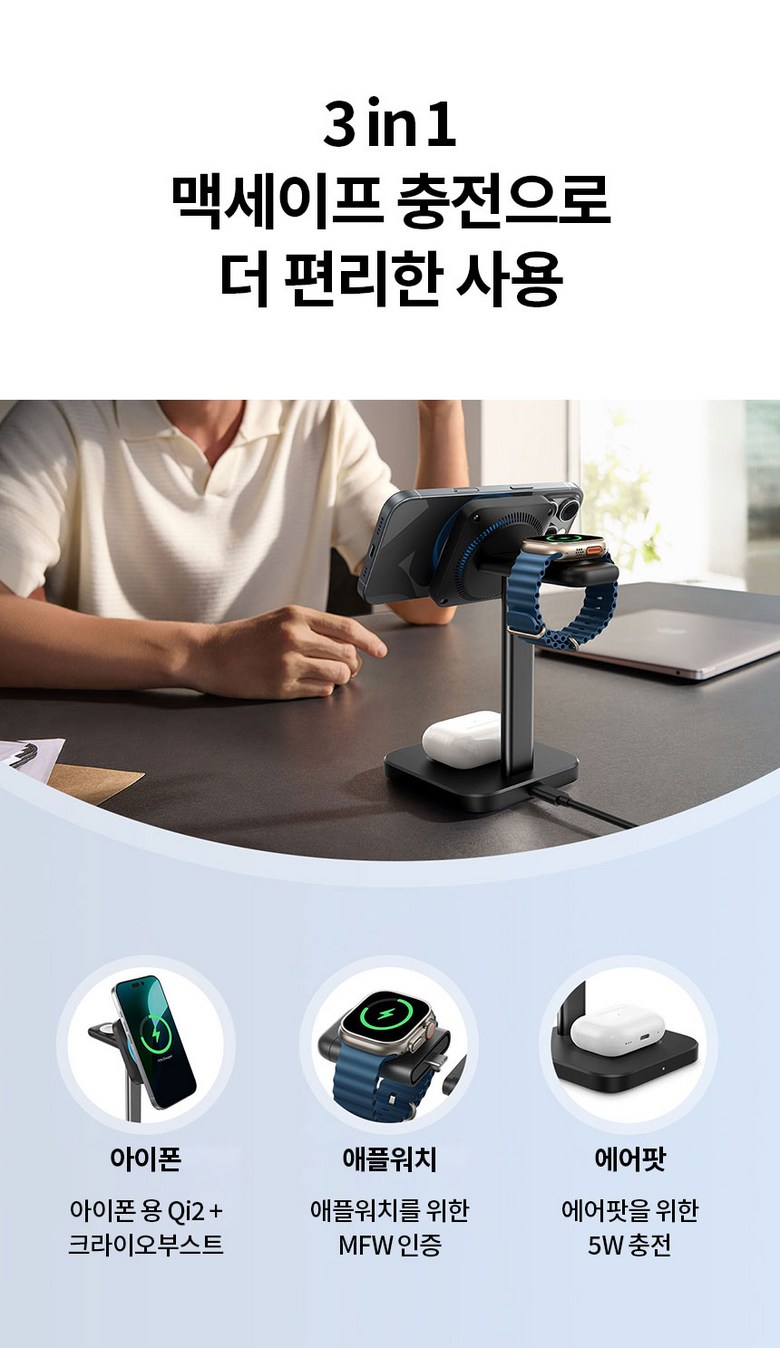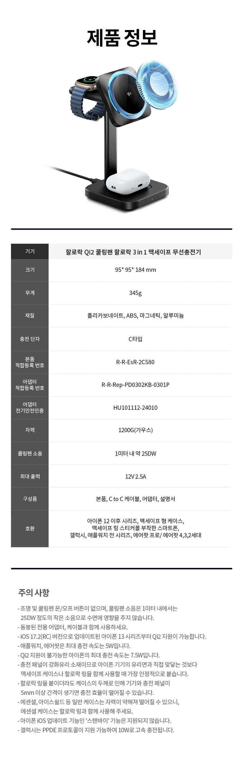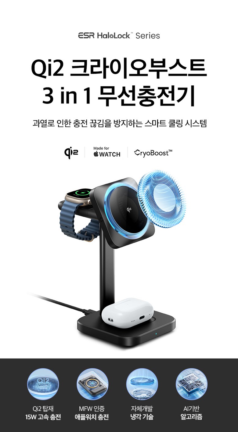 | 품명 및 모델명 | ESR 할로락 3 in 1 무선충전기 크라이오부스트 Qi2인증 EC699 | 인증/허가 사항 | 상품 상세페이지 참조 |