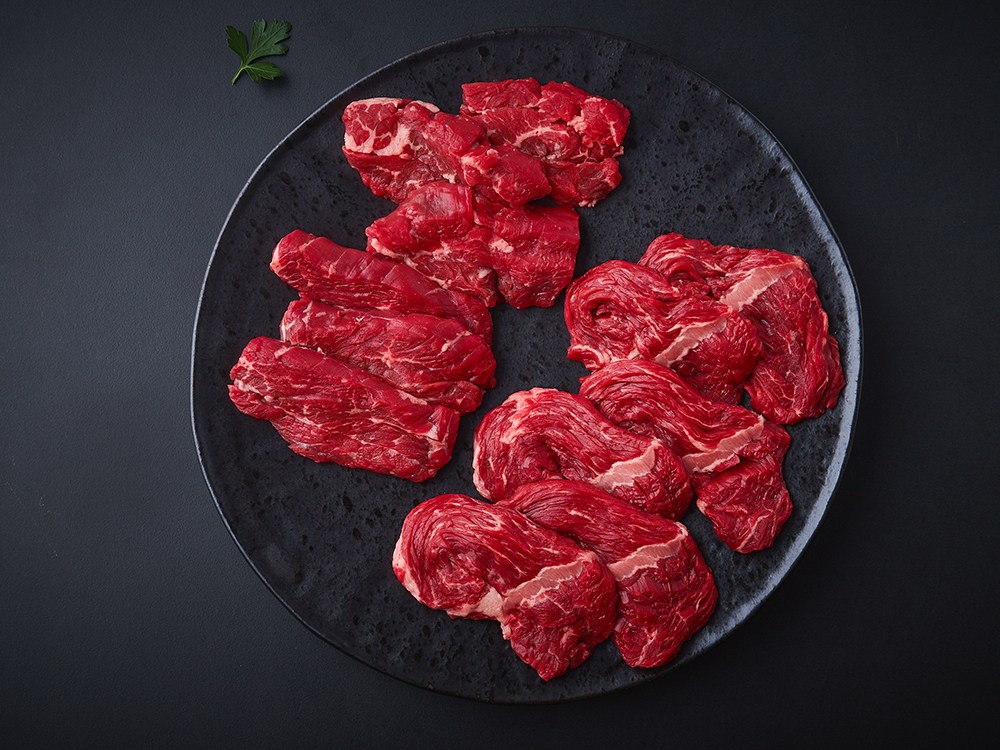 소고기 안창살, 토시살을 한데 담은 모둠팩이에요. 짙은 색을 띠는 안창살, 토시살은 진한 육향과 쫄깃한 식감이 일품인 부위지요. 노릇하게 구워 한입 먹으면, 촉촉한 육즙이 입안 가득 번진답니다. 향긋한 와인 한 잔을 곁들여 근사한 식사를 즐겨보세요.