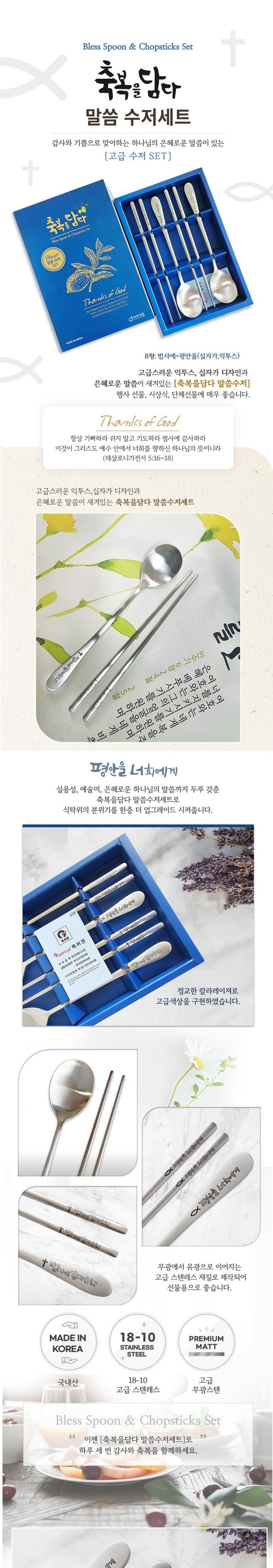 축복을담다 말씀 수저 SET B형:범사에+평안을(십자가 익투스) 수저세트 교회 선물 국산