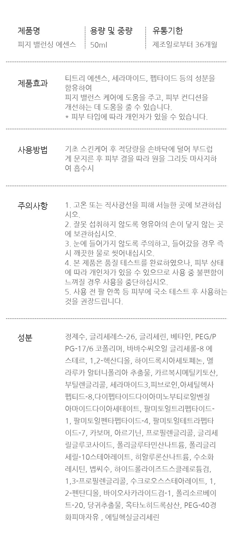 | 용량(중량) | 50ml | 제품 주요 사양 | 모든 피부용 |