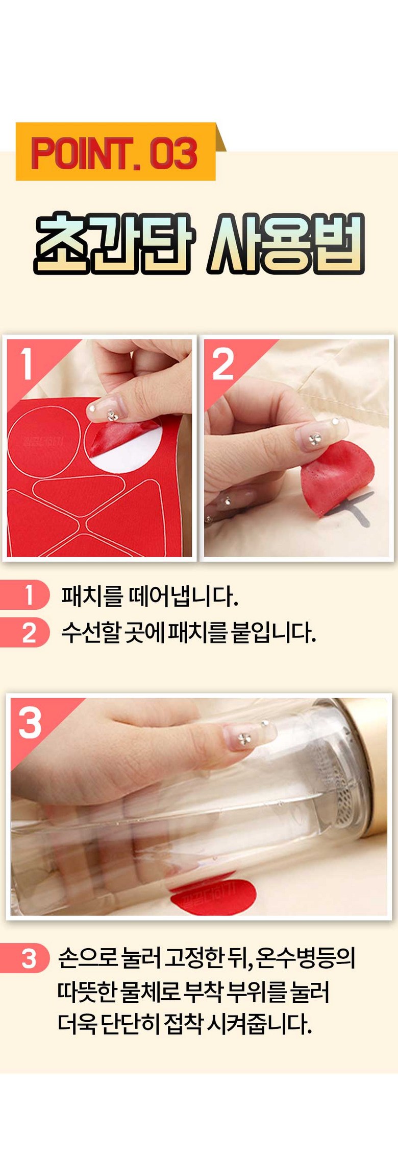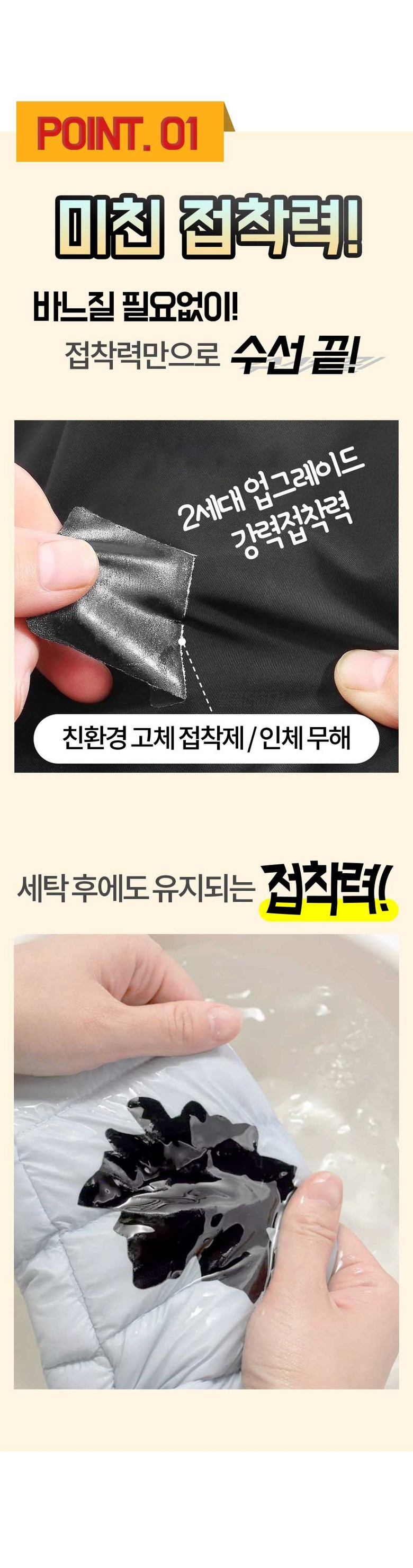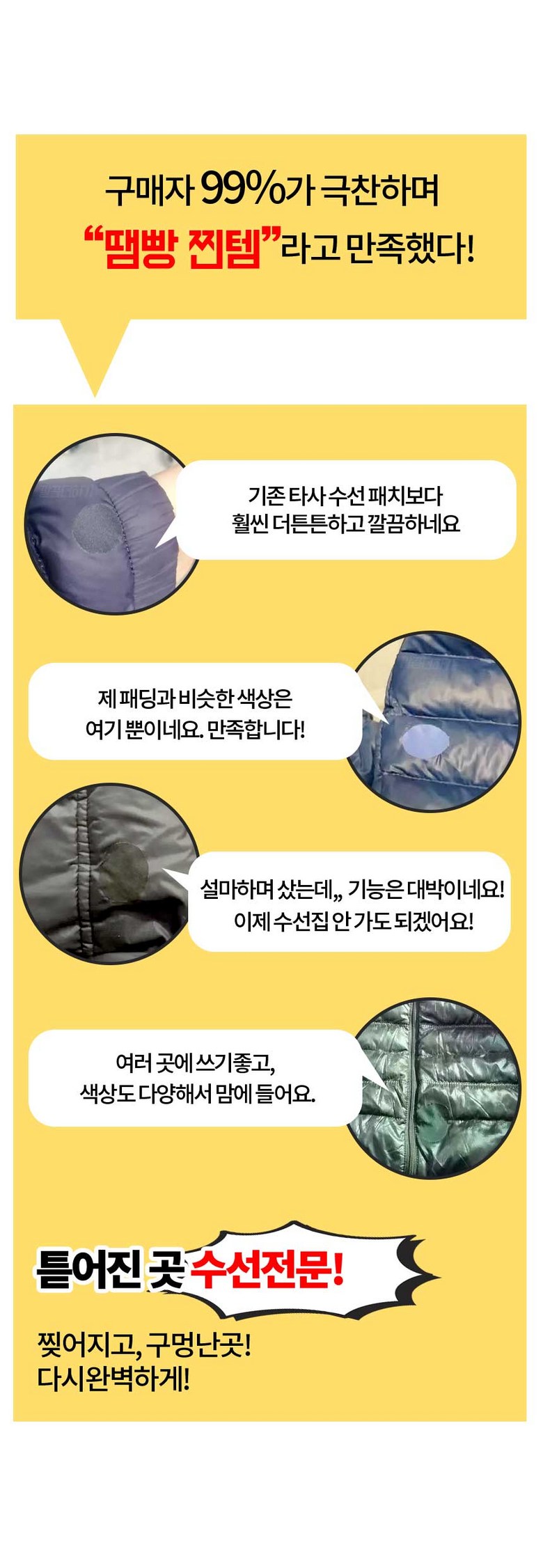 | 품명 및 모델명 | 깔끔더하기 패딩 수선 스티커 | 인증/허가 사항 | 해당 사항 없음 |
