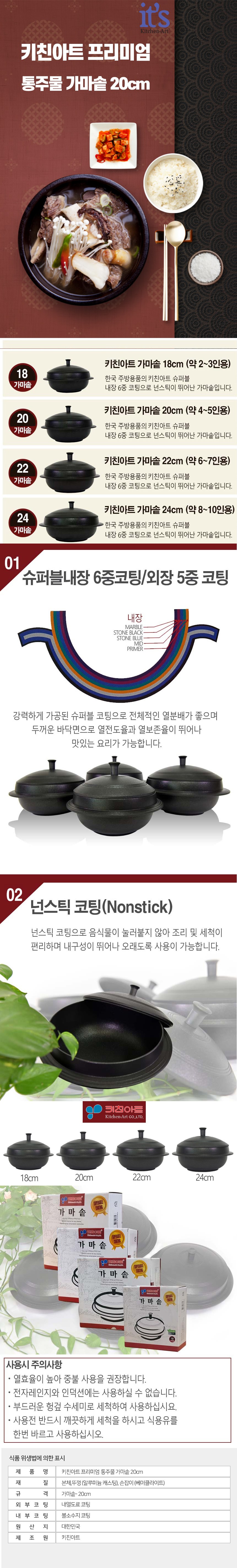 | 품명 및 모델명 | 키친아트 프리미엄 통주물 가마솥, 20cm , 1개 | 재질 | 컨텐츠참조 |