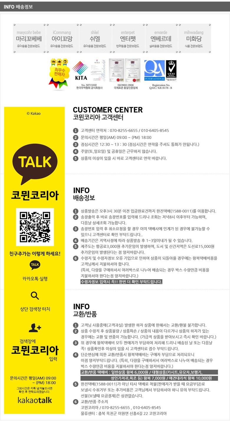 - ㆍ교환/반품에 관한 일반적인 사항은 판매자가 제시사항보다 관계법령이 우선합니다.