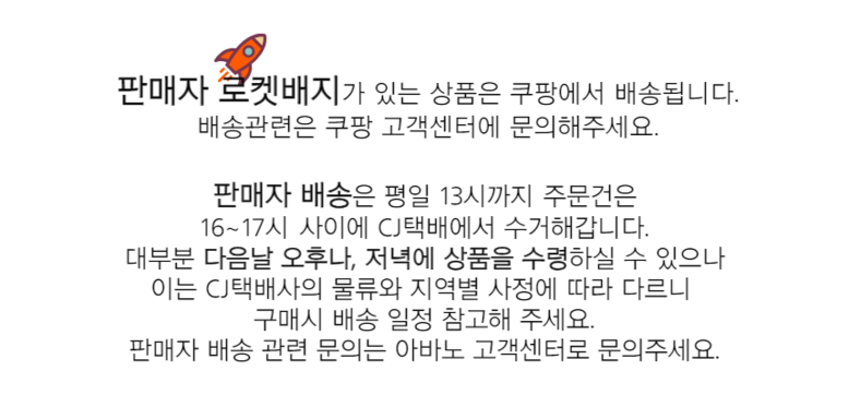 | 배송기간 | ㆍ도서산간 지역 등은 배송에 3-5일이 더 소요될 수 있습니다. - 천재지변, 물량 수급 변동 등 예외적인 사유 발생 시, 다소 지연될 수 있는 점 양해 부탁드립니다. | ||