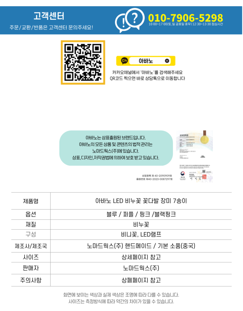 | 소비자상담 관련 전화번호 | 상품 상세페이지 참조 | ||