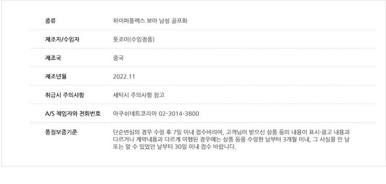 | 소비자상담 및 교환반품 문의 | 쿠팡고객센터 1577-7011 배송 및 환불/교환에 대한 문의는 마이쿠팡-고객센터 내 상담하기를 이용해주세요. | ||