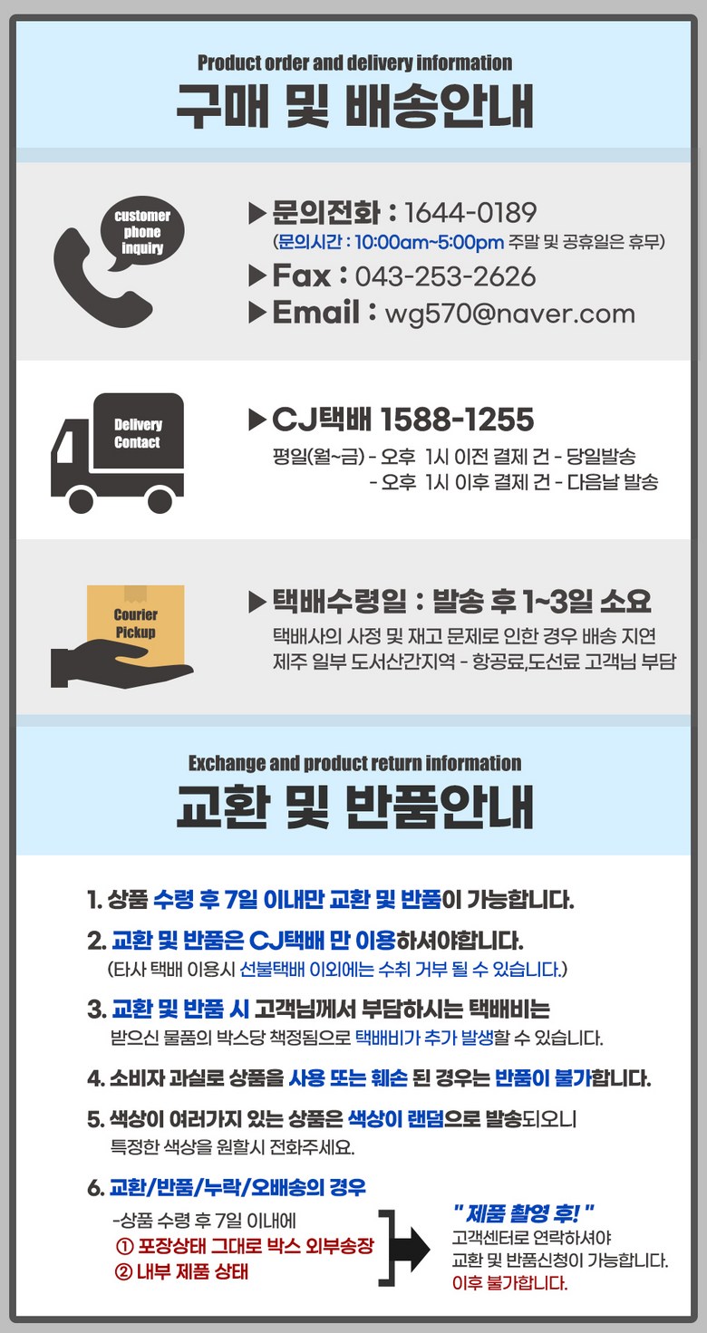 - ㆍ교환/반품에 관한 일반적인 사항은 판매자가 제시사항보다 관계법령이 우선합니다.