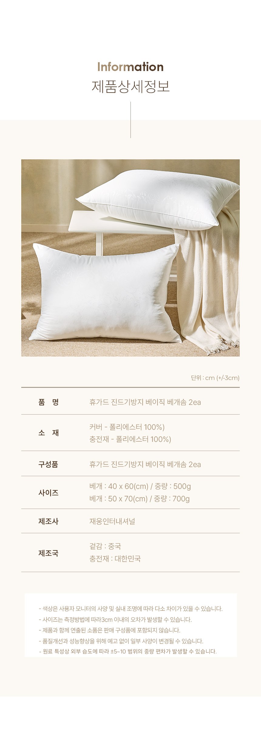 - 베개 구성: 베개솜