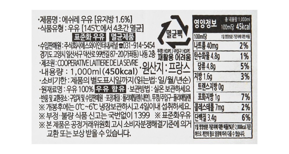 | 포장단위별 내용물의 용량(중량), 수량 | 1L x 3개 | 원재료명 및 함량 | 컨텐츠 참조 |