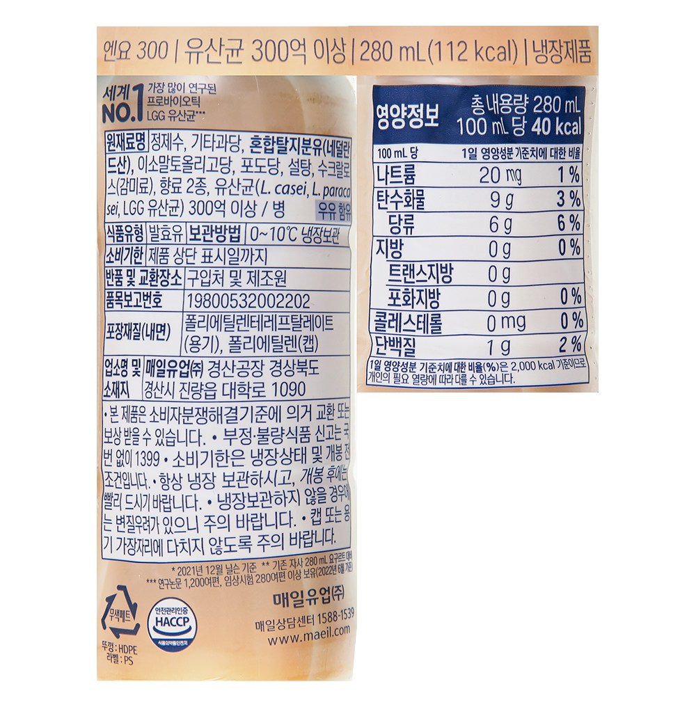 | 제품명 | 엔요 300 | 식품의 유형 | 컨텐츠 참조 |