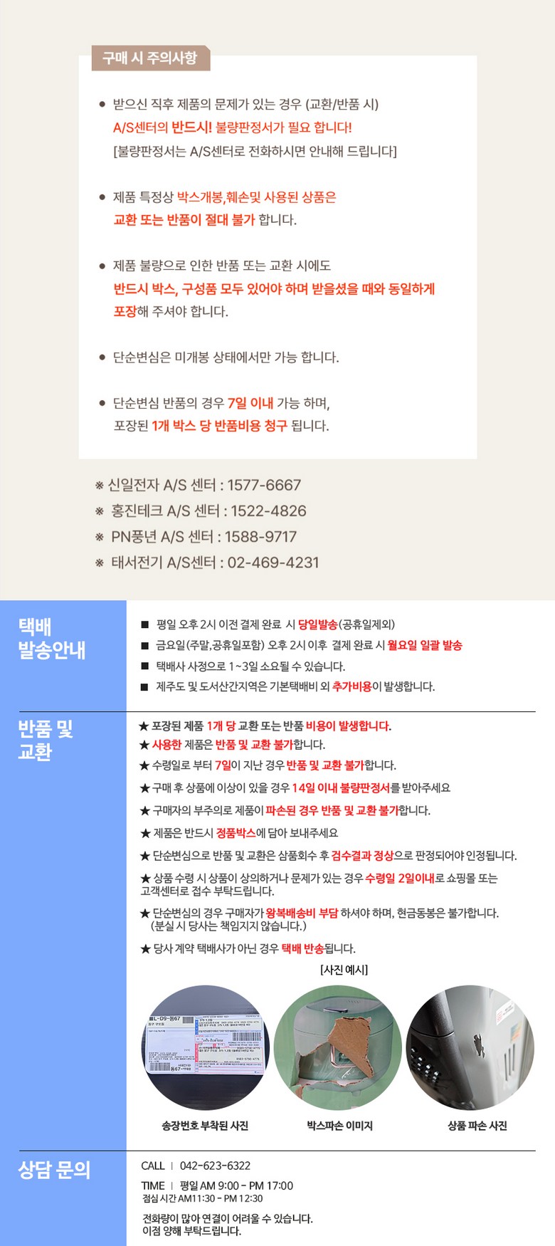 - ㆍ모니터 해상도의 차이로 인해 색상이나 이미지가 실제와 달라, 고객이 단순 변심으로 교환/반품을 무료로 요청하는 경우