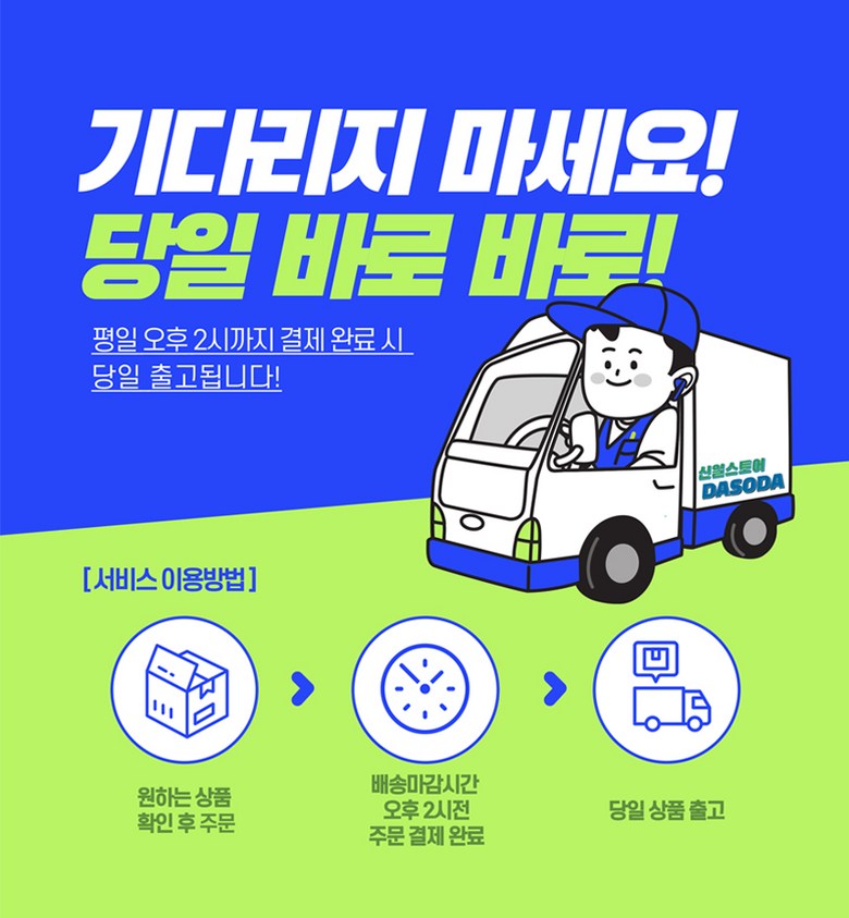 | 배송기간 | ㆍ도서산간 지역 등은 배송에 3-5일이 더 소요될 수 있습니다. - 천재지변, 물량 수급 변동 등 예외적인 사유 발생 시, 다소 지연될 수 있는 점 양해 부탁드립니다. | ||