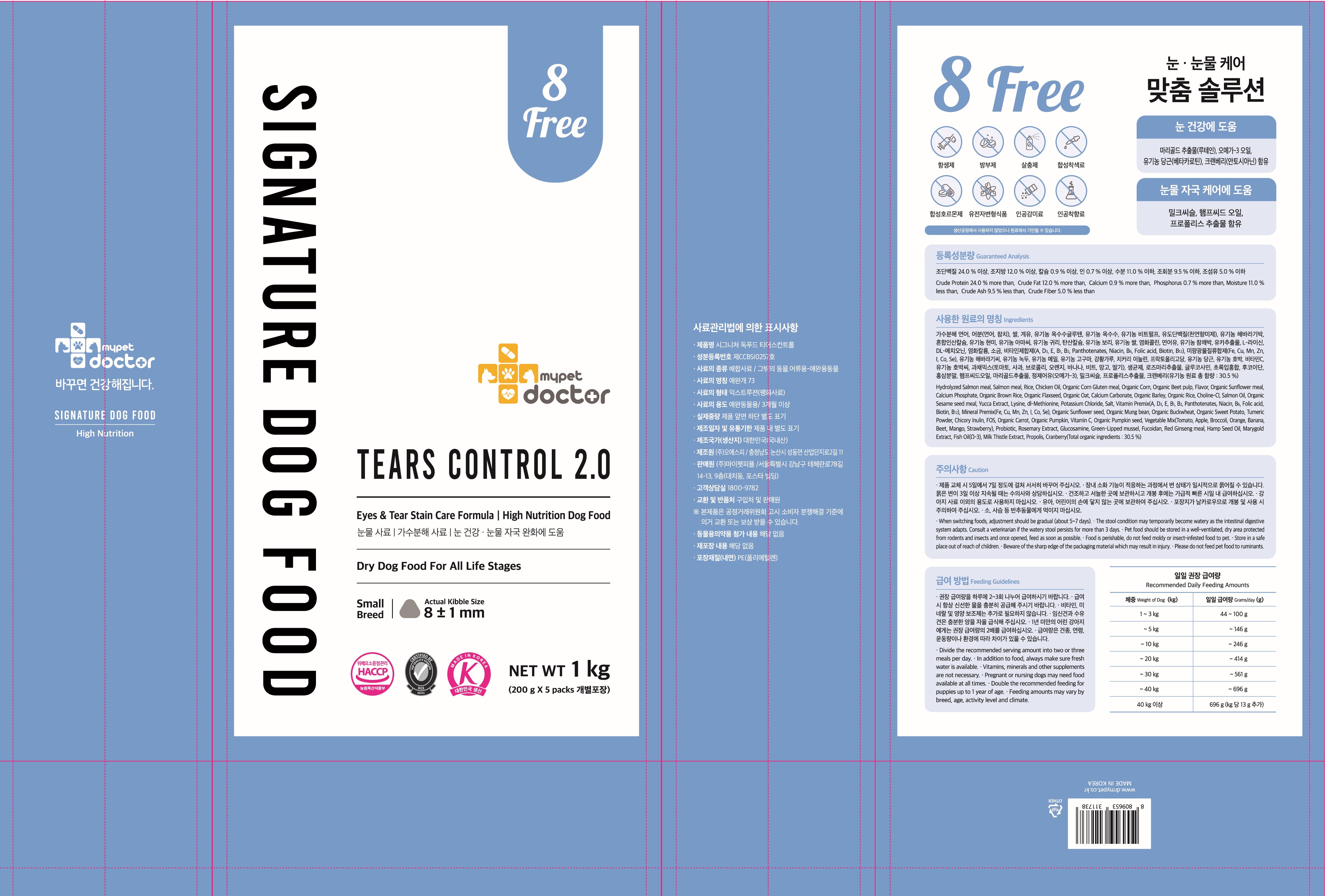 | 품명 및 모델명 | 시그니처 독푸드 티어스컨트롤 | 인증/허가 사항 | 사료관리법에 따른 성분등록번호 : 컨텐츠 참조 |