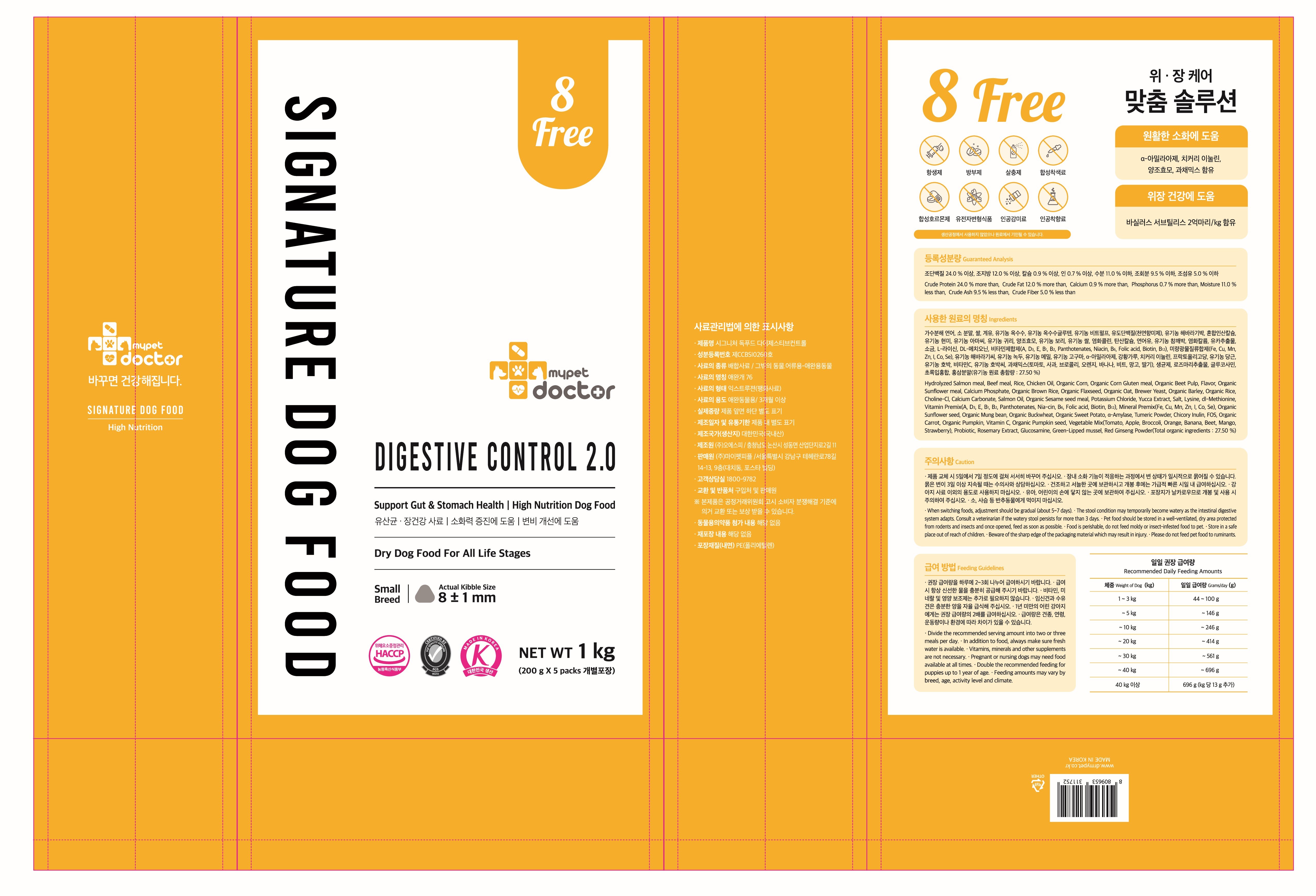 | 품명 및 모델명 | 시그니처 독푸드 다이제스티브컨트롤 | 인증/허가 사항 | 사료관리법에 따른 성분등록번호 : 컨텐츠 참조 |