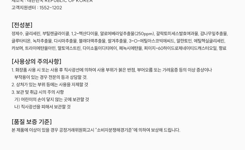 | 용량(중량) | 260ml | 제품 주요 사양 | 모든 피부용 |